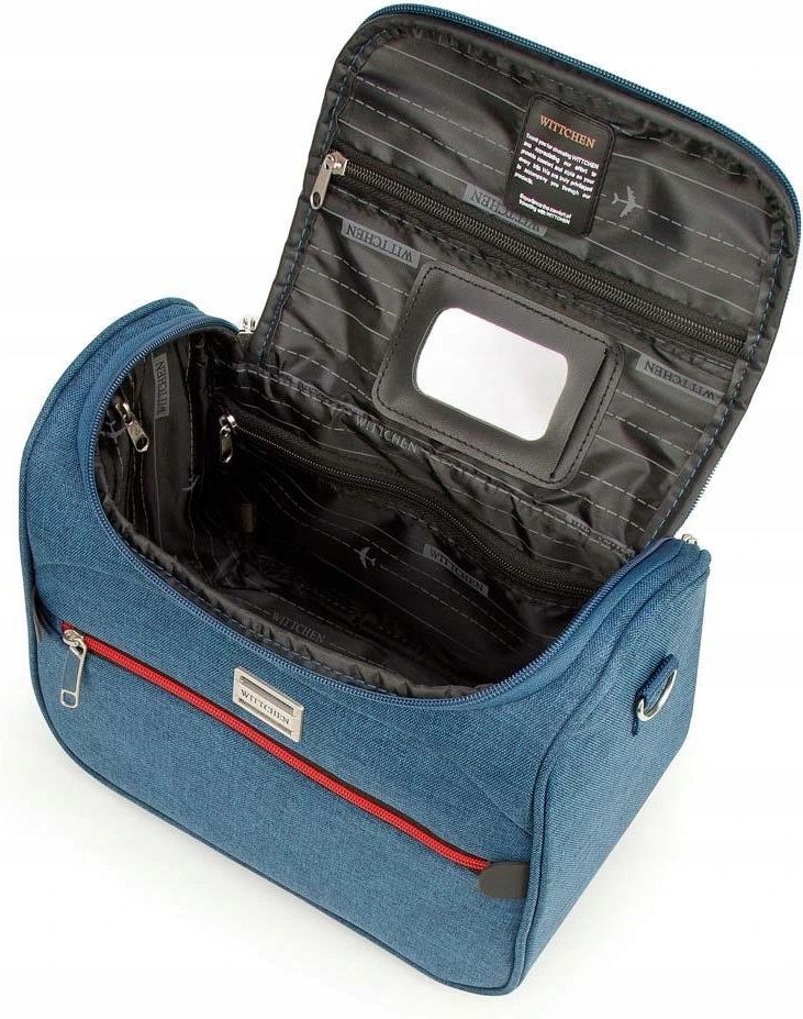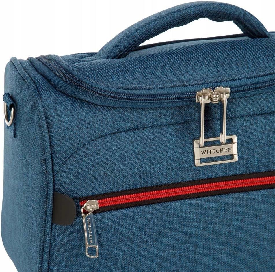 WITTCHEN – elegancja w nowoczesnym wydaniuWITTCHEN to polska marka premium z przeszło 30-letnim doświadczeniem, która od początku istnienia stawia na jakość, rzemiosło i wyjątkowy styl.Znana z ekskluzywnej galanterii skórzanej, dziś oferuje szeroką gamę produktów – od eleganckich torebek i butów, przez modną odzież, po funkcjonalne i stylowe walizki.Każdy detal w kolekcjach WITTCHEN to połączenie elegancji z nowoczesnością, klasyki z trendami, komfortu z luksusem.Wybierając WITTCHEN , wybierasz tradycję, jakość i niepowtarzalny charakter.Kosmetyczka z kolorowym suwakiemKod produktu: 56-3S-504-91 Kosmetyczka podróżna UNISEX. Uniwersalny model kosmetyczki , którą zabierzesz ze sobą w niejedną podróż. Ma usztywnione dno i boczne ścianki , dzięki czemu nawet w niekomfortowych warunkach Twoje rzeczy pozostaną w nienaruszonym stanie. Uszyta jest z grubej, wytrzymałej tkaniny , która dodatkowo cechuje się łatwością w czyszczeniu . Jej ozdobą jest kolorowy suwak . Wewnątrz znajdziesz zamykaną na zamek kieszeń i wyjmowane lusterko . Aby było Ci wygodnie, możesz wsunąć ją na rączkę walizki lub przewiesić przez ramię na doczepianym pasku. Kosmetyczka z kolorowym suwakiem to niezastąpiony dodatek , niezależnie od tego czy wybierasz samolot, czy samochód – weź ją ze sobą.W środku:dużo miejsca na rzeczy osobiste; zamykana na suwak kieszeń ;stonowana, ciemna podszewka w logo WITTCHEN; wyjmowane lusterko . Dodatkowo: 100% poliester ; zamykana na suwak kieszeń od frontu ; odpinany pasek z (...) więcej regulacją ;uchwyt do wsunięcia na rączkę walizki; nóżki, na których postawisz kosmetyczkę .- wysokość (cm): 25